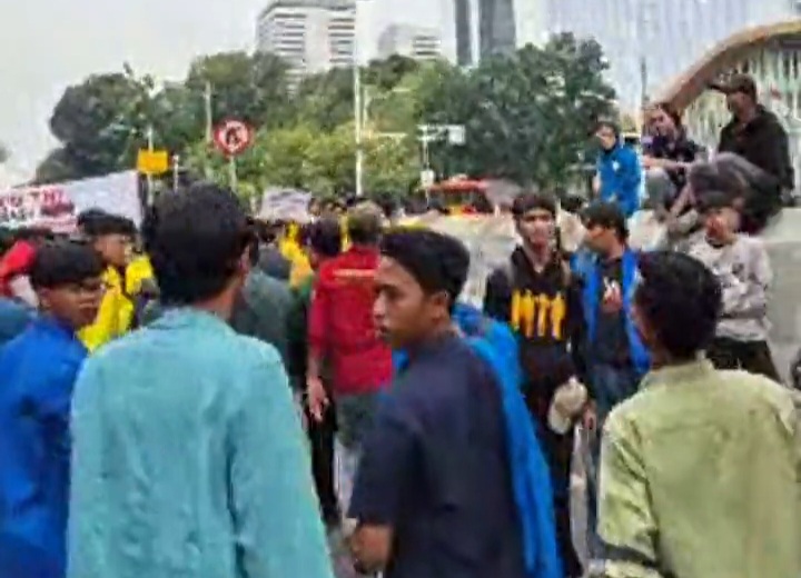 Pintasan.coUnjuk rasa yang digelar oleh mahasiswa dari berbagai perguruan tinggi di Jalan Merdeka Selatan, Jakarta Pusat, pada Senin (20/10/2025), sempat berlangsung tegang sebelum akhirnya bubar dengan tertib.