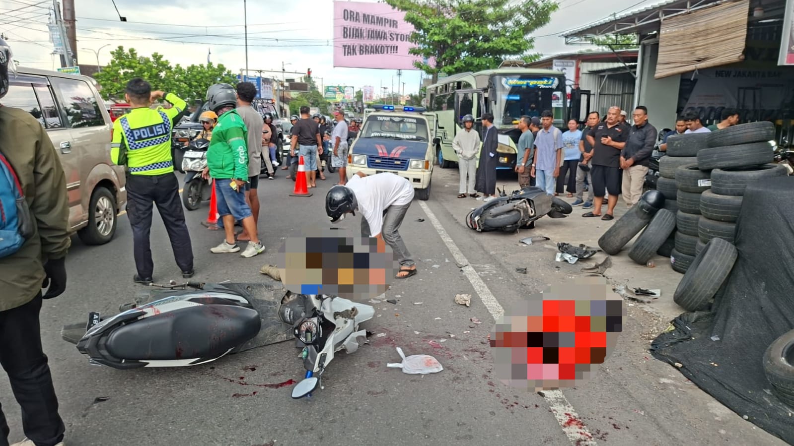 Motor Tabrak Bus Mogok di Jalan Ahmad Yani Banguntapan, Pengendara Alami Patah Kaki