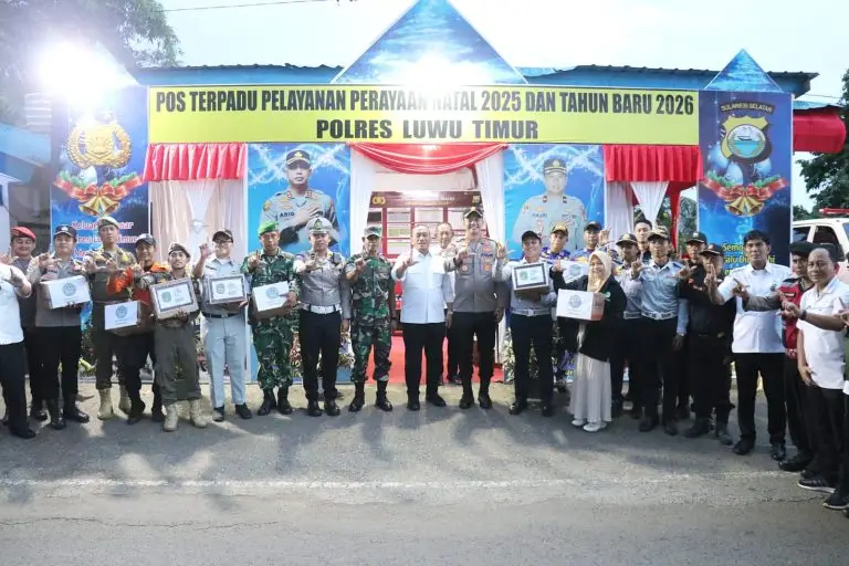 Pintasan.co, Luwu Timur – Menjelang perayaan Natal dan Tahun Baru (Nataru) 2026, Bupati Luwu Timur Irwan Bachri Syam bersama Kapolres Luwu Timur AKBP Ario Putranto TM melakukan kunjungan ke sejumlah pos pengamanan dan pelayanan, Rabu (24/12/2025).