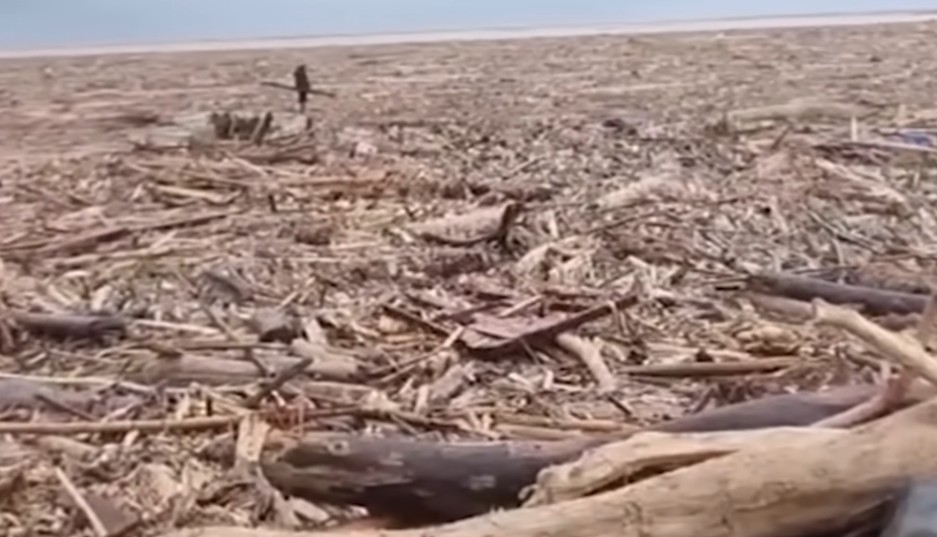 Dalam rekaman tersebut terlihat potongan-potongan kayu besar tersebar di sepanjang aliran banjir bandang. Kondisi ini menunjukkan adanya area hutan yang hilang akibat deforestasi.