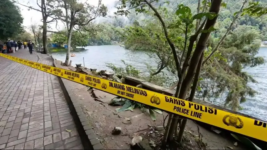 Kapolres Magetan AKBP Raden Erik Bangun Prakasa membenarkan insiden ambrolnya jalan di kawasan wisata Telaga Sarangan tersebut. Dia menyebutkan peristiwa itu terjadi Sabtu siang 10.30 WIB.