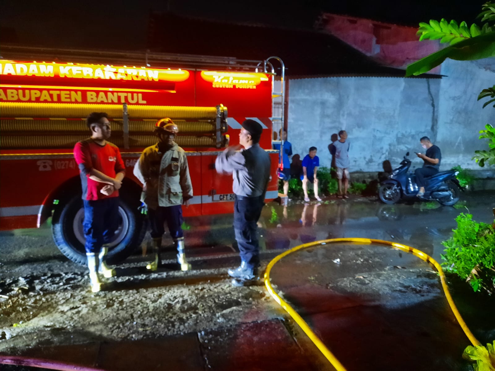 Kejadian dilaporkan sekira pukul 01.00 WIB saat saksi melihat kobaran api di lokasi. Saksi segera memberitahukan korban dan pihak terkait, termasuk tim Pemadam Kebakaran Pos Banguntapan dan Polsek Banguntapan.
