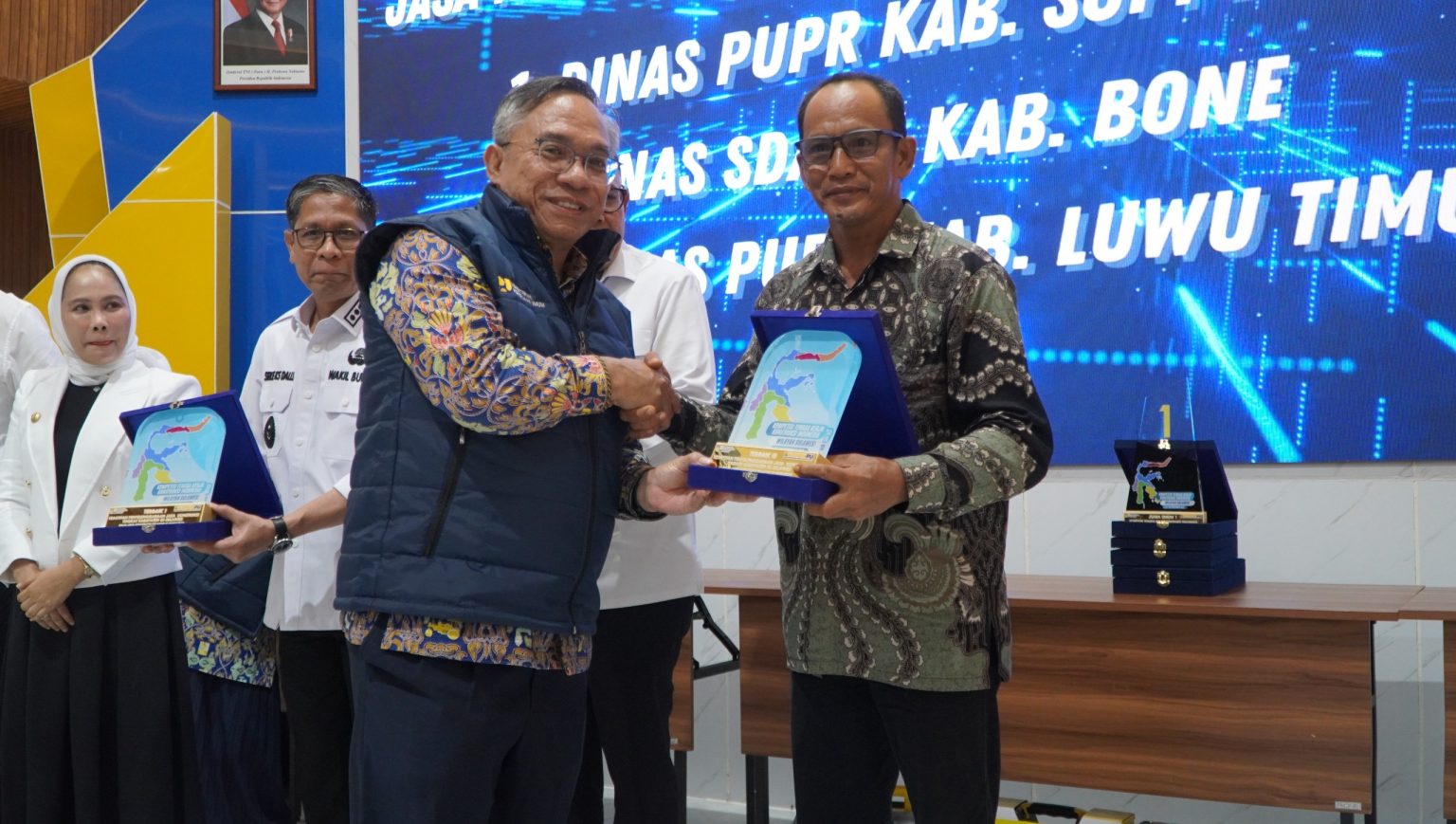 Penghargaan diserahkan langsung oleh Direktur Kompetensi dan Produktivitas Tenaga Kerja Konstruksi Ditjen Bina Konstruksi, Kimron Manik, dan diterima oleh Sekretaris Dinas Pekerjaan Umum dan Penataan Ruang (PUPR) Luwu Timur, Yusran Achmad, mewakili Bupati Luwu Timur.