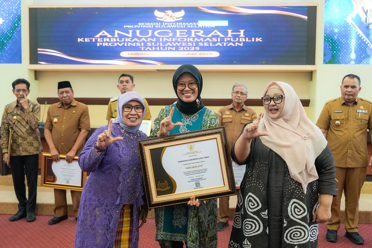 Penghargaan diserahkan langsung oleh Ketua Komisi Informasi Provinsi Sulawesi Selatan, Fauziah Erwin, dan diterima Kepala Dinas Komunikasi, Informatika, Statistik dan Persandian (Kominfo SP) Kabupaten Luwu Timur, Andi Tabacina Ahmad, yang hadir mewakili Bupati.