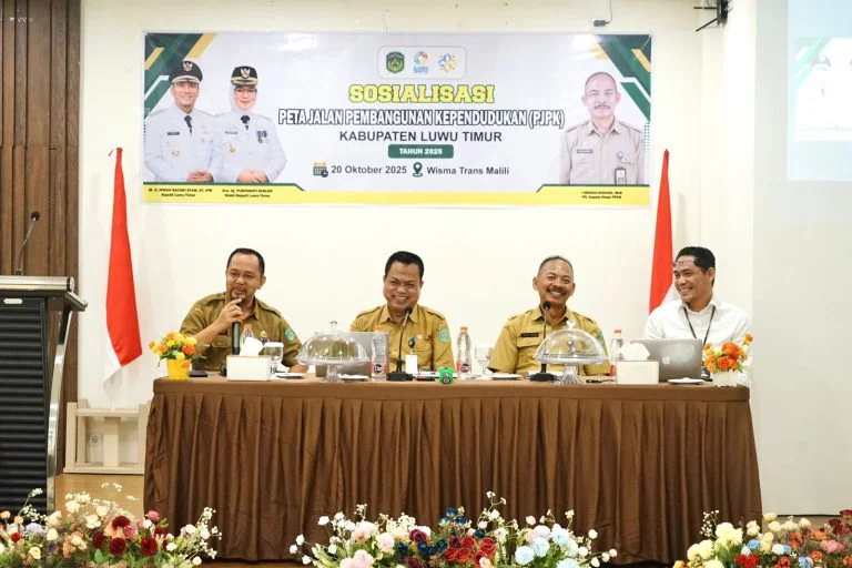 Pintasan.co, Luwu Timur – Dalam rangka memperkuat arah kebijakan dan strategi pengelolaan kependudukan yang terpadu serta berkelanjutan, Pemerintah Kabupaten Luwu Timur melalui Dinas Pengendalian Penduduk dan Keluarga Berencana (DPPKB) menyelenggarakan Sosialisasi Penyusunan Peta Jalan Pembangunan Kependudukan (PJPK) 2025–2029.