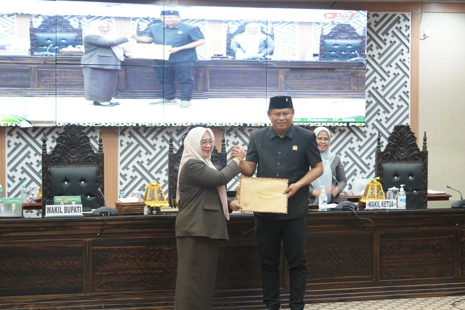 Penyerahan Ranperda tersebut dilakukan oleh Wakil Bupati Luwu Timur, Hj. Puspawati Husler, dan diterima langsung oleh Ketua DPRD Luwu Timur, Ober Datte, disaksikan oleh Wakil Ketua II Hj. Harisah Suharjo, seluruh anggota dewan, serta jajaran Pemerintah Kabupaten Luwu Timur.
