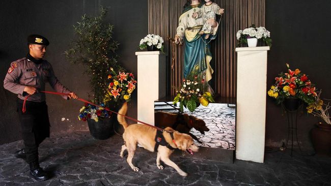 Pintasan.co, Surabaya – Pengamanan diperketat menjelang natal dan tahun baru. Seluruh polisi di Jawa Timur lakukan sterilisasi di sejumlah gereja yang ada di Jawa Timur, terutama di Surabaya. Proses sterilisasi gereja di Surabaya ini melibatkan anjing K9 untuk mendeteksi ada tidaknya barang-barang mencurigakan.