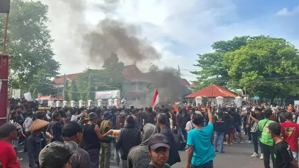 Demo Indonesia Gelap Memanas, Asap Kepul Penuhi Patung Kuda