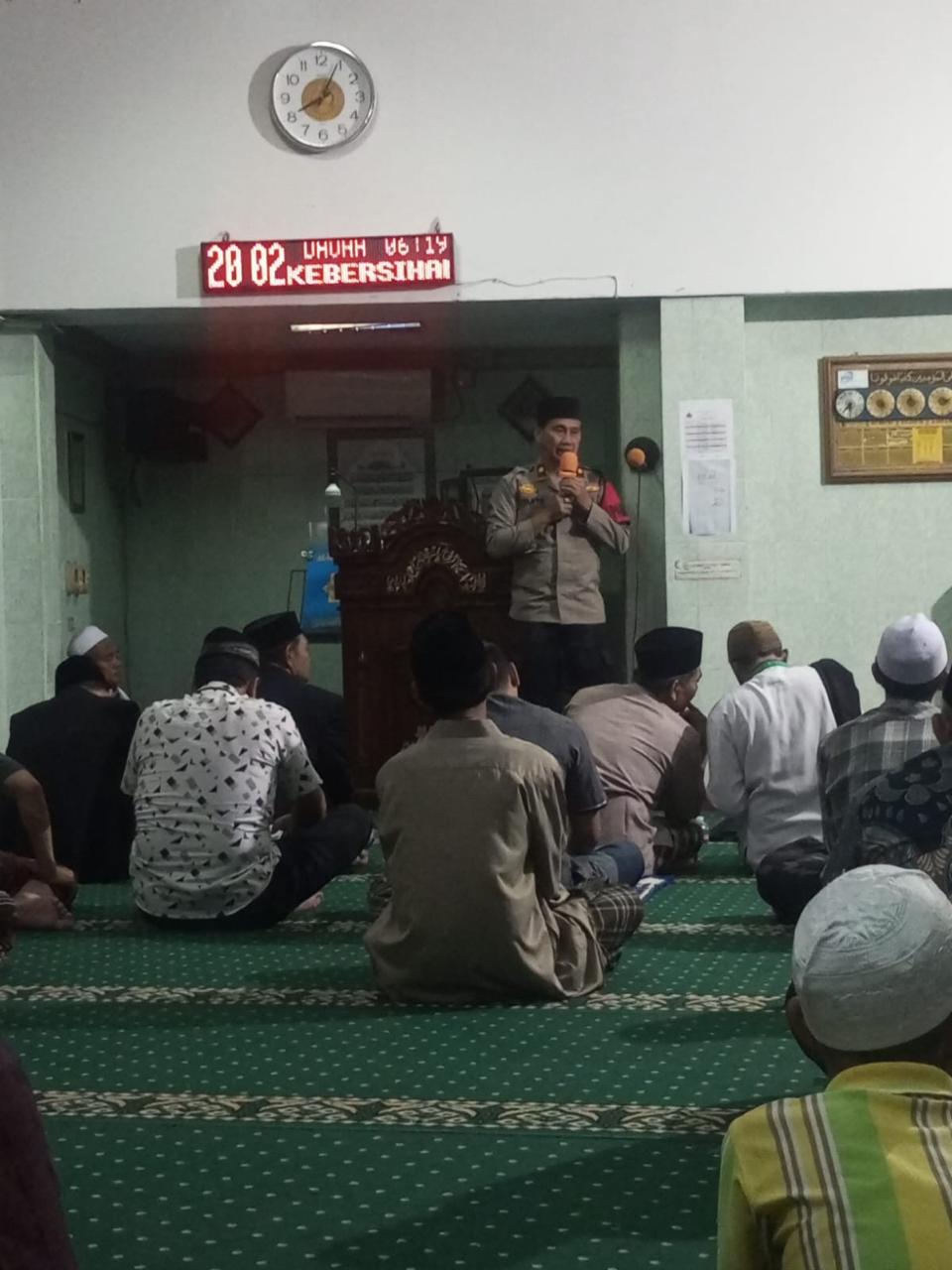 Rangkaian kegiatan diawali dengan salat Isya berjamaah, dilanjutkan salat Tarawih, penyampaian pesan kamtibmas, dan ramah tamah bersama warga.