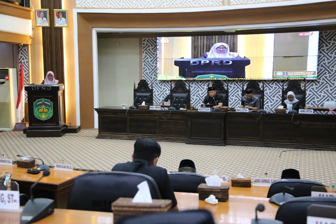 Pintasan.co, Luwu Timur – Wakil Bupati Luwu Timur, Hj. Puspawati Husler, menyampaikan Jawaban Bupati atas Pandangan Umum Fraksi-fraksi DPRD terhadap tiga Rancangan Peraturan Daerah (Ranperda) dalam Rapat Paripurna DPRD Luwu Timur, Kamis (19/2/2026).