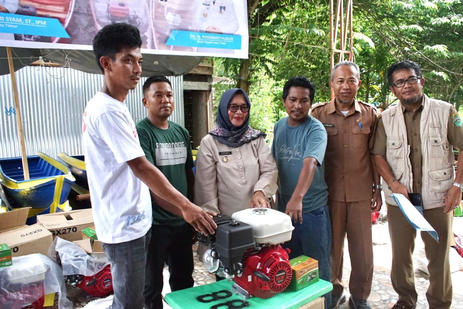 Kegiatan ini turut dihadiri Sekretaris Dinas Perikanan Lutim, Heriwanto Manda, Plt. Kepala Dinas Parmudora, Muhammad Safaat DP, Kepala Bagian Forkopim Setdakab Lutim, Agus Thobrani, serta perwakilan dari kelompok penerima bantuan.